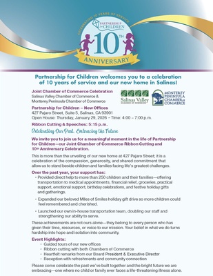 We invite you to join us for a meaningful moment in the life of Partnership for Children—our Joint